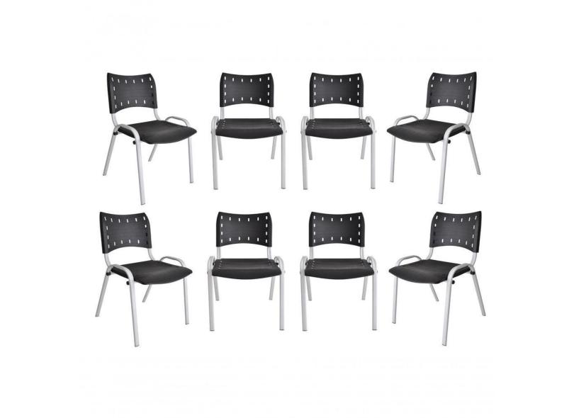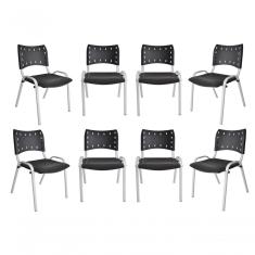 Kit 8 Cadeiras Iso Para Escola Escritório Comércio Preta Base Branca