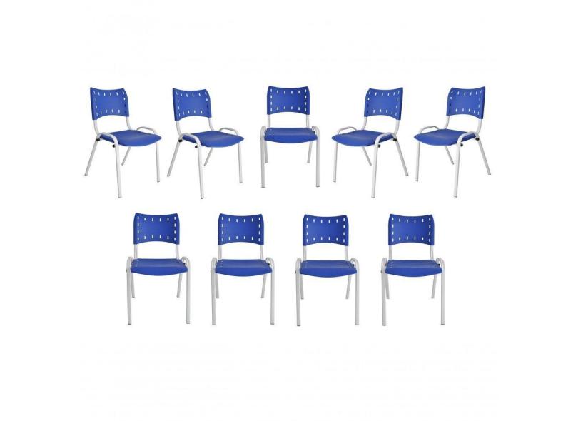 Kit 9 Cadeiras Iso Para Escola Escritório Comércio Azul Base Branca