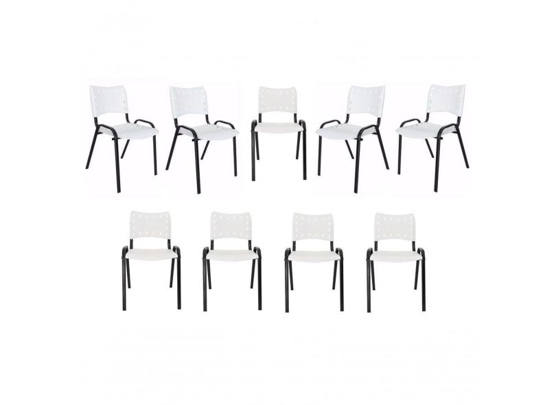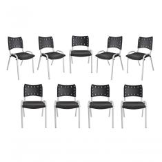 Kit 9 Cadeiras Iso Para Escola Escritório Comércio Preta Base Branca