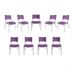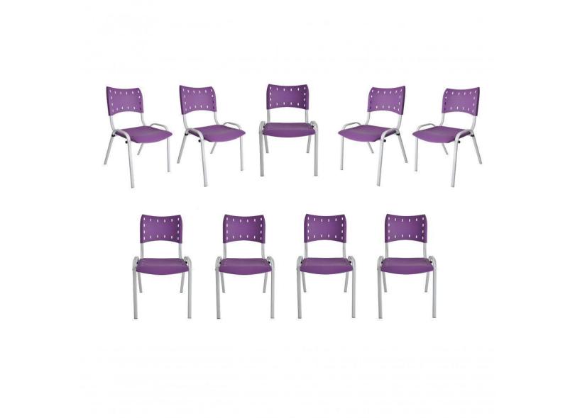 Kit 9 Cadeiras Iso Para Escola Escritório Comércio Roxa Base Branca