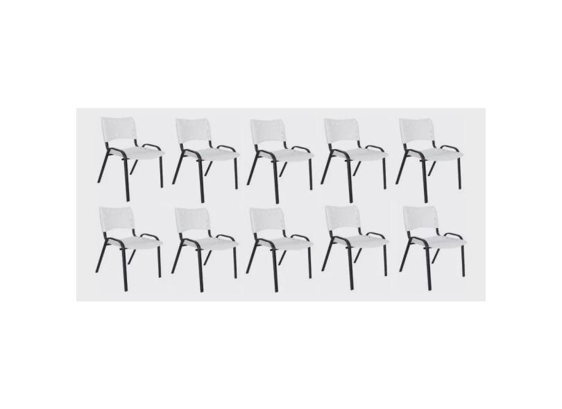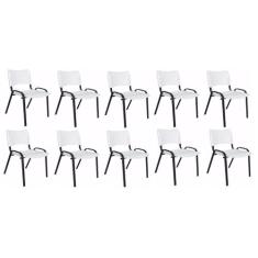 Kit Com 10 Cadeiras Iso Para Escola Escritório Comércio Branca Base Preta