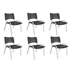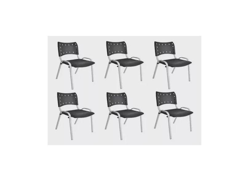 Kit Com 6 Cadeiras Iso Para Escola Escritório Comércio Preta Base Branca