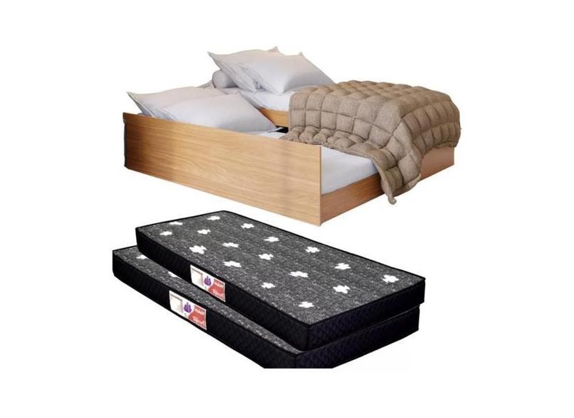 Bicama Solteiro Vira Casal MDF Incluso 2 Colchões 3 em 1 - Bicama Matr