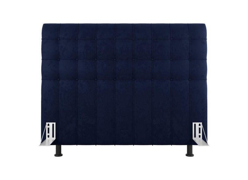 Cabeceira Cama Box Casal Dahlia 140Cm Com Frame Veludo Azul Marinho - Abmaza
