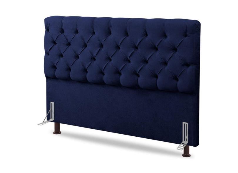 Cabeceira Cama Box Solteiro Lylla 90cm Capitonê Com Frame Suede Azul Marinho - Abmaza