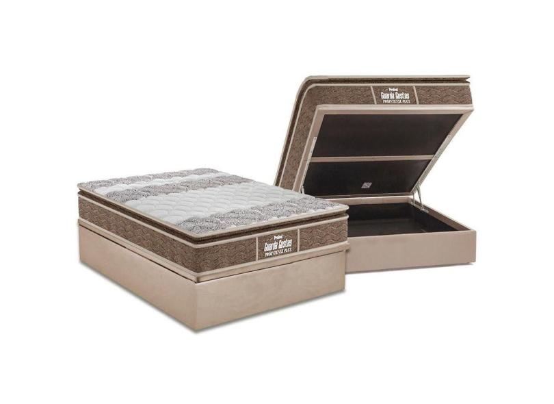 Cama Box Baú Casal: Colchão Anatômico Probel D33 Guarda Costas PróIntense Plus + Base CRC Suede Clean (138x188)