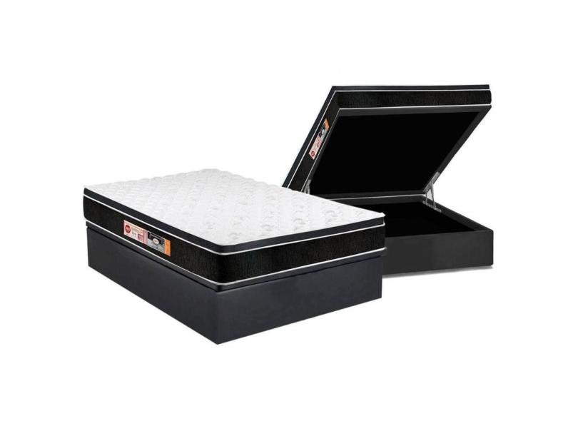 Cama Box Baú Casal: Colchão Espuma Castor D33 Black E White Air Euro Pillow + Base Gray(138X188)