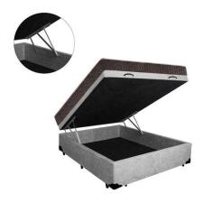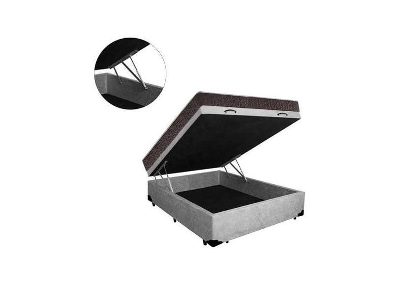 Cama Box Baú Casal Colchão Espuma D33 + Box Suede Cinza Santo Box 56x138x188