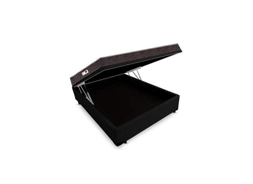 Cama Box Baú Casal Colchão Espuma D33 + Box Suede Preto Serra Negra 62x138x188