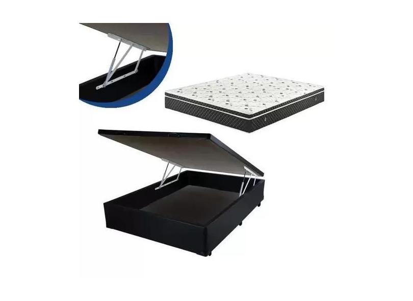 Cama Box Baú Casal Colchão Mola Bonnel + Box Sintético Preto 65X138x18