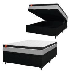 Cama Box Baú Casal Colchão Molas Ensacadas Real 138x188x68cm Branco / Bege - Suporta até 130Kg Por Pessoa