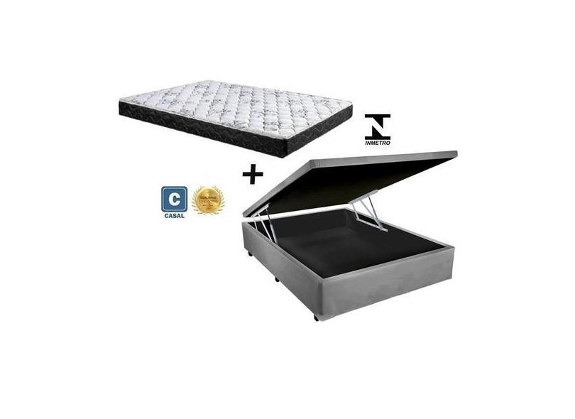 Cama Box Baú Casal Green Cinza + Colchão Espuma D33 138x188x14 - Mestr