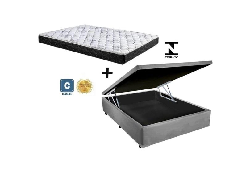 Cama Box Baú Casal Green Cinza + Colchão Espuma D33 138x188x8
