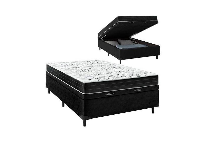 Cama Box Baú Casal Sintético Preto Colchão De Espuma Semi Ortopédica E
