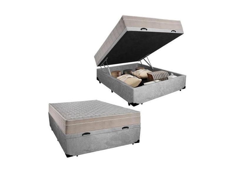 Cama Box Baú Casal Suede + Colchão Sereneprime Molas Ensacadas 138X18
