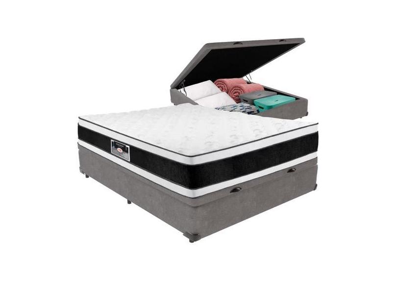 Cama Box Baú Cinza e Colchão Black & White Air Double Face Espuma D33