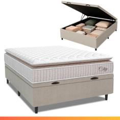 Cama Box Baú Colchão Casal Molas Ensacadas City Pillow Top 138x188x64cm Branco/Bege Hellen - Suporta até 110kg por Pessoa