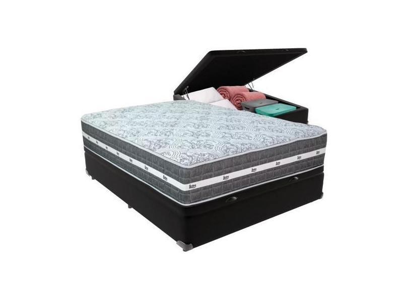 Cama Box Baú e Colchão Black Graphite Molas Ensacadas Casal Anjos, Pr