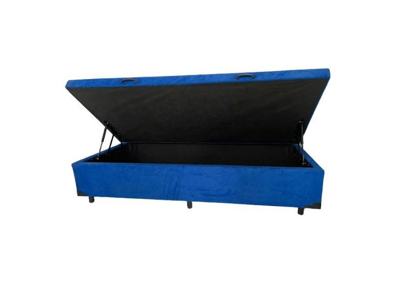 Cama Box Baú Solteiro Suede Azul Com Pistão A Gás