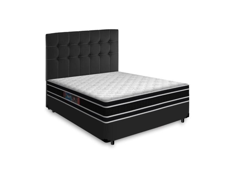 Cama Box + Cabeceira Cassis e Colchão Casal - Castor - Black White D33 - 138x188x62cm Preto