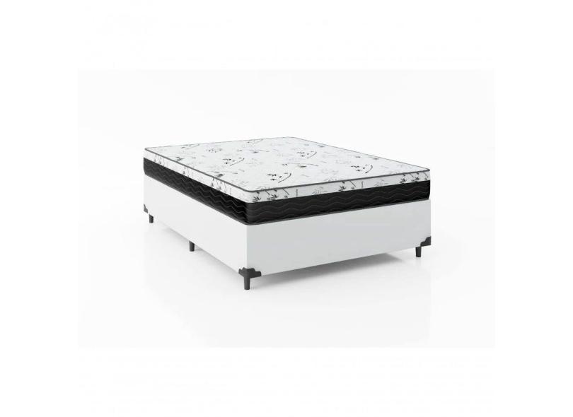 Cama Box Casal 138 Branco Com Colchão D33 One Face Bello Box 58x138x188