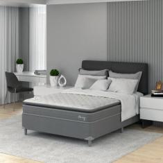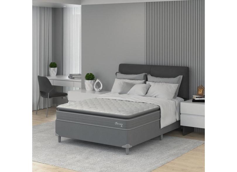 Cama Box Casal 138x188x54cm D40 Classic C Pillow Montreal Branco/Cinza