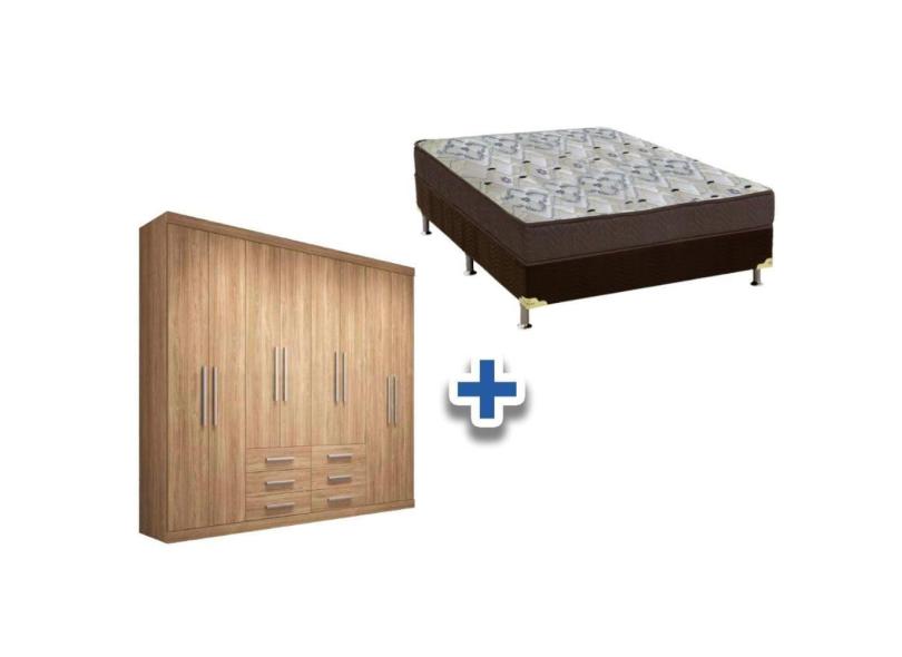 Cama Box Casal + Colchão D45 Ortobom + Guarda Roupa Master 8.6 Atacama