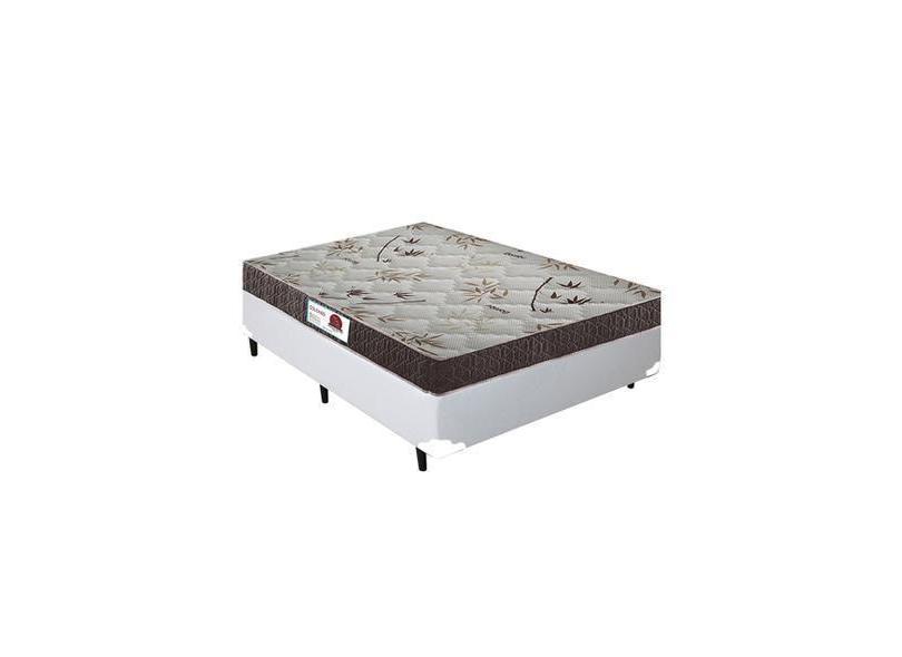 Cama Box Casal Colchão Espuma D33 Bordado + Box Sintético Branco Rc So