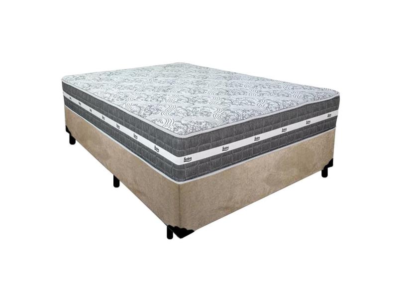 Cama Box Casal Suede + Colchão Anjos Black Graphite Molas Ensacadas 138x188x64cm Bege