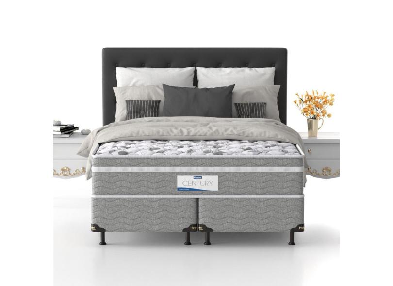 Cama Box Queen Size Probel Century D28 com Molas Ensacadas e Pillow Euro 70x158x198cm - Branco/Cinza