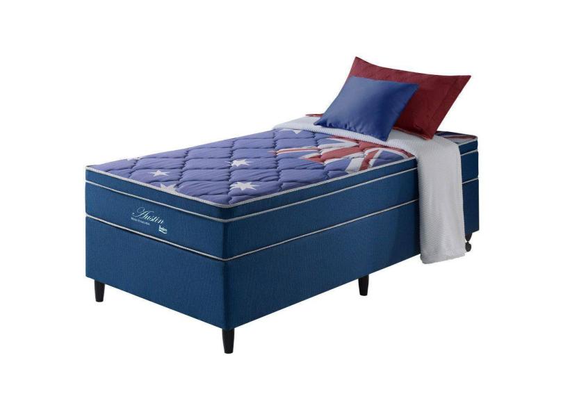 Cama Box Solteiro Azul + Colchão Molas Superlastic Austin 88x188x68cm