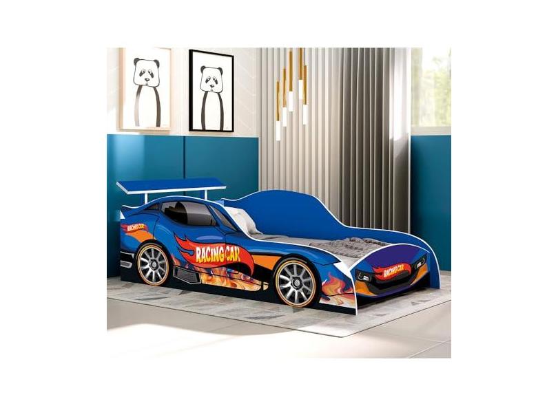 Cama Carro Rida Racing Car Solteiro Gd - Racing Car Relâmpago/Azul