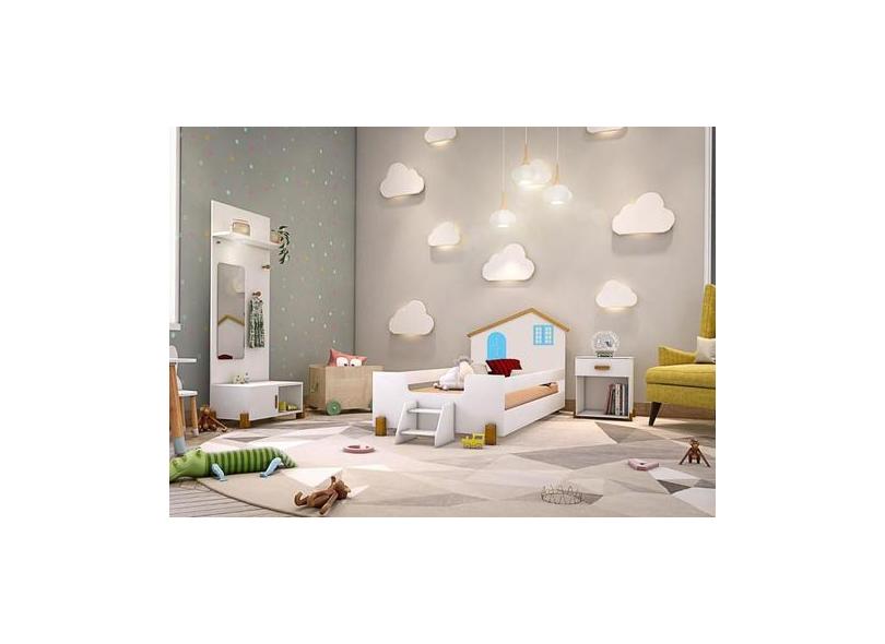 Cama Infantil Belíssima Branca E Azul Com 2 Luminárias Divaloto