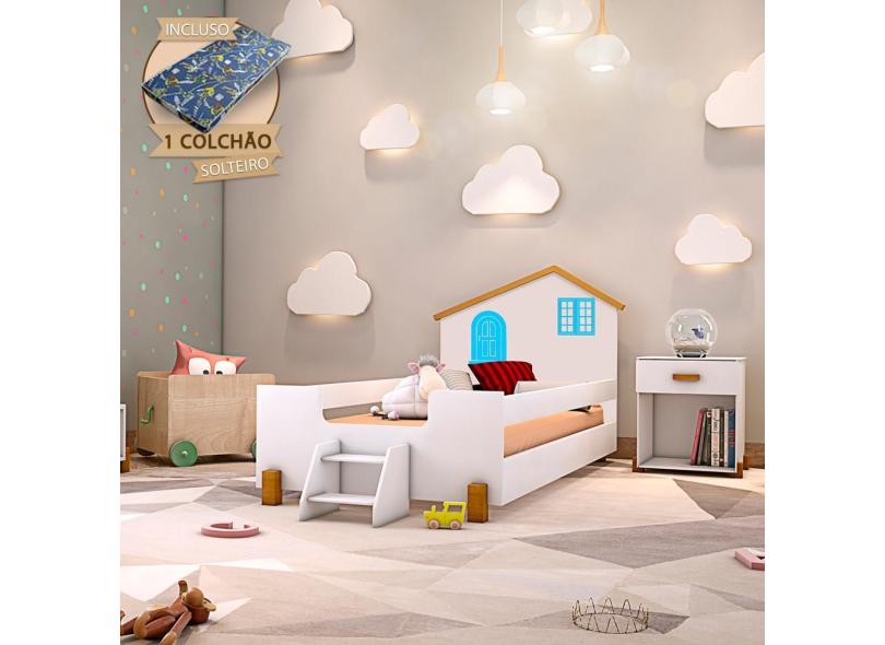 Cama Infantil Solteiro Belissima Azul - Branco e Mel + Colchão