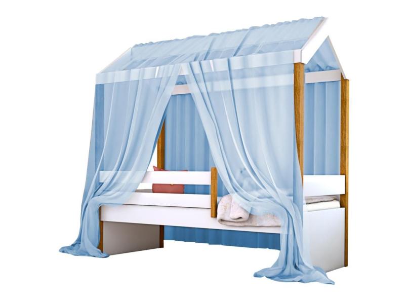 Cama Montessori Cabana Solterio Com Dossel Azul