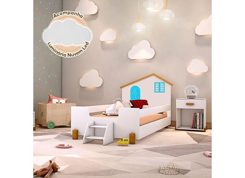 Cama Montessoriana Infantil Juvenil Belissima Azul - Branco E Amêndoa + Luminária Led - Cor: Branco