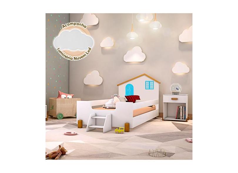 Cama Montessoriana Infantil Juvenil Belissima Azul - Branco E Amêndoa