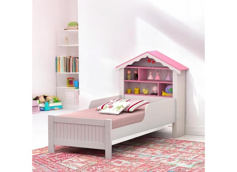 Cama Solteiro Casinha Princesa Branca e Rosa com Colchão