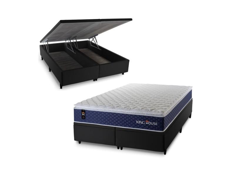 Conjunto Box Baú Lagras Azul 193x203x73 c/ Molas Ensacadas