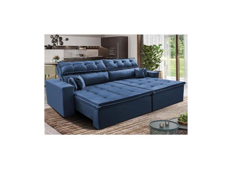 Sofá Retrátil e Reclinável 3,12m Luxos Cama Inbox Velusoft Azul
