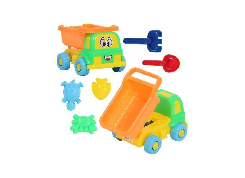 Caminhão Basculante Infantil Colorido Com Acessórios Praia - Pica Pau