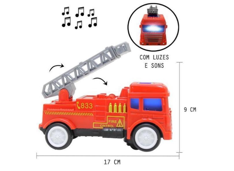 Caminhão Bombeiro Brinquedo 17Cm Com Luz Som Meninos
