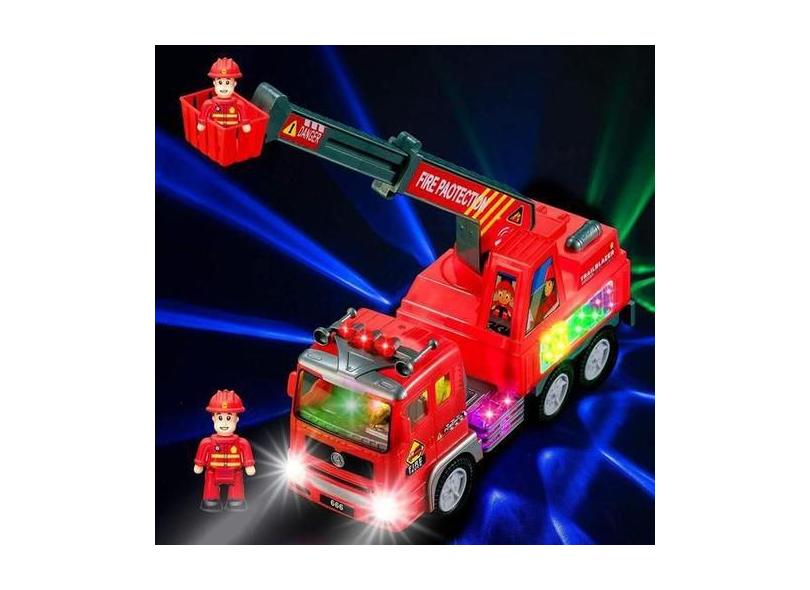 Caminhão Carro De Bombeiros Com Sons De Sirene Real Luzes 4D - Toy Kin