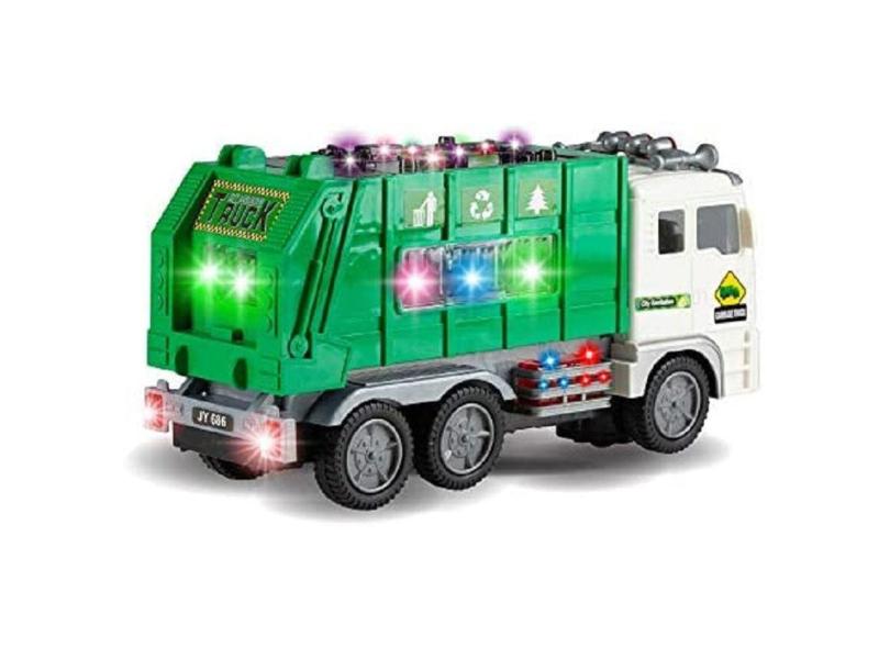 Caminhão coletor de lixo de brinquedo com som e luzes para crianças a partir de 3 anos