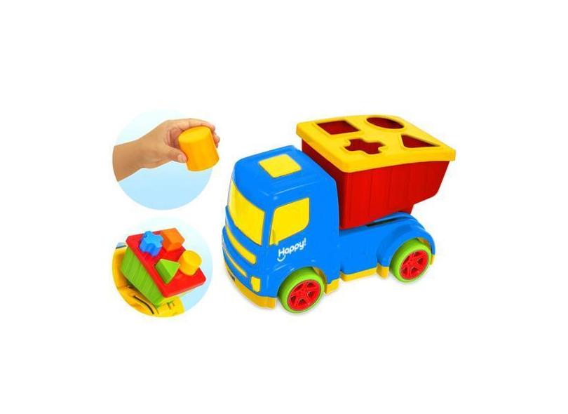 Caminhão Com Blocos Didáticos De Encaixar Coleção Happy - Usual Brinqu