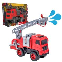 Caminhão Max Bombeiro Lança Água Grande+ Bombeiro Ferramenta - Adijoma
