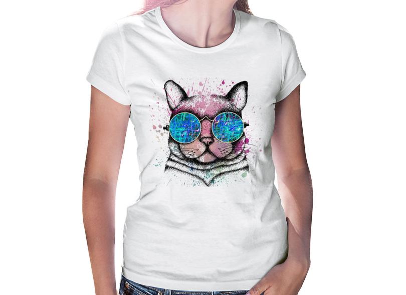 Baby Look Gato De Óculos Psicodélico - Foca Na Moda
