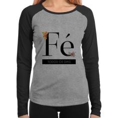 Baby Look Raglan Fé Todos Os Dias Manga Longa - Foca Na Moda