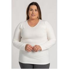 Blusa Feminina Plus Size Manga Longa Cotton Decote V - Serena