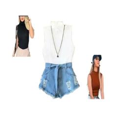Blusinha Blusa De Tricô Gola Alta Garrafinha Canelado Cor
